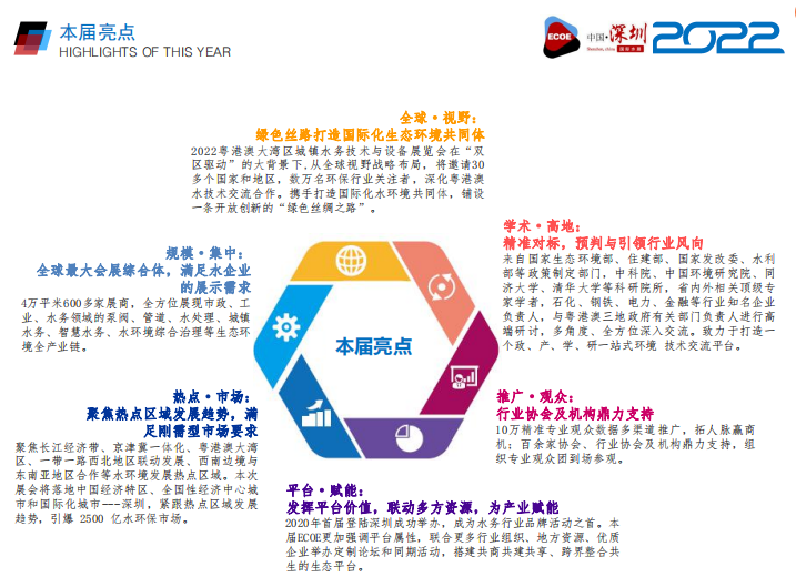 在“雙區(qū)驅(qū)動”的大背景下,“粵港澳大灣區(qū)城鎮(zhèn)水務(wù)技術(shù)與設(shè)備展覽會”將以“研討+展覽展示”的方式,深度打造吸引創(chuàng)新力量、聚合科研團隊、培育創(chuàng)新活力的平臺,為以深圳為中心的粵港澳大灣區(qū)在生態(tài)環(huán)境領(lǐng)域的創(chuàng)新治理提供支撐和服務(wù)。