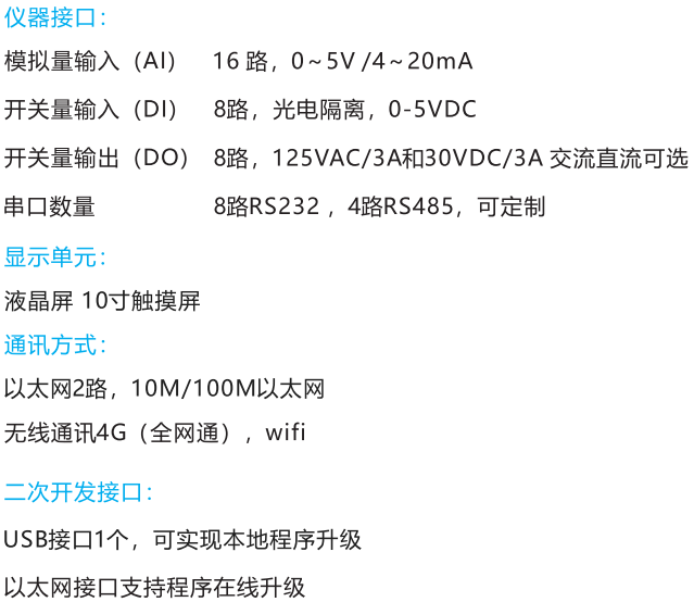 產(chǎn)品簡介: 環(huán)保數(shù)采儀A320的產(chǎn)品特點有:10"觸摸屏、中文菜單?;可對數(shù)采儀進行遠程設置、升級、程序查看?;"斷點續(xù)傳"、"平臺補遺"確保數(shù)據(jù)的完整性;支持4G(全網(wǎng)通)通訊方式?;支持手機設置,方便現(xiàn)場運營維護;多中心數(shù)據(jù)傳輸,可VPN專網(wǎng)接入?;模塊化結(jié)構(gòu)設計、多類型、可擴展的數(shù)據(jù)輸入接;支持各級環(huán)保局及企業(yè)同步查看數(shù)據(jù)?口、方便第三方運維?;具備全面反控、報警、診斷功能