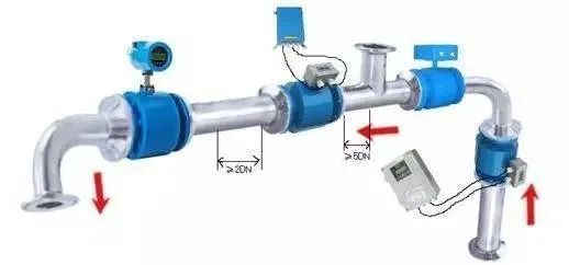 流量計可以水平和垂直安裝,但是應該確保避免沉積物和氣泡對測量電極的影響,電極軸向保持水平為好。垂直安裝時,流體應自下而上流動。